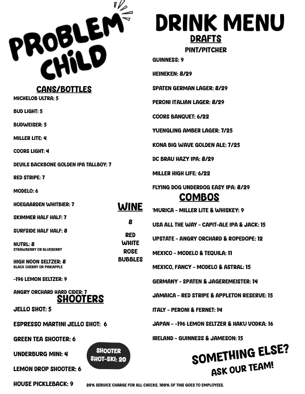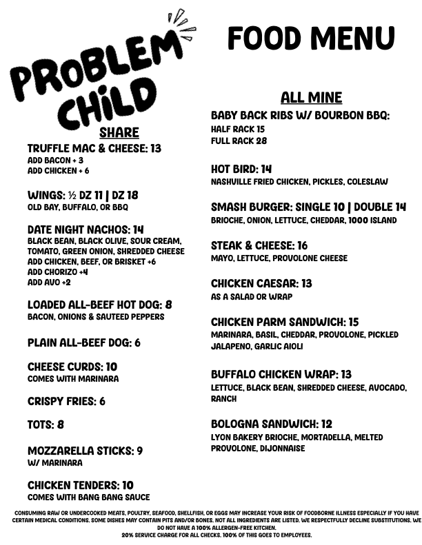 From Small Gatherings to Full Buyouts, it won’t be a problem to host your next event at Problem Child.